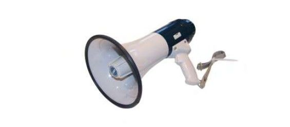 Megafono con sirena e fischio - struttura ABS compatta e robusta - alimentazione con 10 batterie AA ricaricabili (non incluse), durata 25 ore circa - potenza 15W. nominali